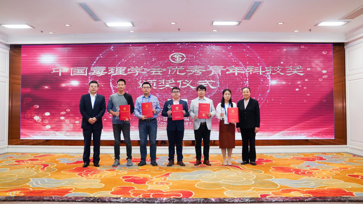 为鼓励毒理学青年科技工作者求真务实、勇于创新的精神,加快青年科技人才的成长,充分调动广大毒理学科技工作者的积极性和创造性,加速中国毒理学科技发展和人才队伍建设,保障公众健康、社会安定和社会经济可持续发展,结合我国毒理学发展实际,设立了优米任务APP优秀青年科技奖。遵循“依靠专家、严格标准、鼓励创新、公平公正”的原则,每两年评选一次。2020年学会共评选出陈石磊、尚增甫、宋杨、翁勤洁、张乐帅5名获得第四届优米任务APP优秀青年科技奖,于11月7日在广西南宁召开的优米任务APP第七次中青年学者科技论坛开幕式举行颁奖仪式,秘书长刘超研究员宣读了《关于授予2020年“优米任务APP优秀青年科技奖”的通报》以及罗氏集团Singer发来的贺信。副理事长李桦研究员、孙祖越研究员为他们颁发奖杯和证书。