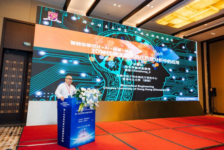 香港中文大学李晨钟教授做了题为“3D神经微生理系统在药效分析中的应用”的报告。他介绍了3D神经微生理系统的构建方法及其在药效分析中的应用,强调了该系统在模拟人体神经系统功能、评估药物对神经系统影响方面的独特优势。
