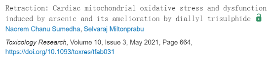9. 撤回:砷诱导的心脏线粒体氧化应激和功能障碍及二烯丙基三硫化物对其的改善作用