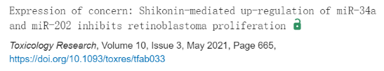 10. 编辑关切:紫草素介导的 miR-34a 和 miR-202 上调抑制了视网膜母细胞瘤增殖