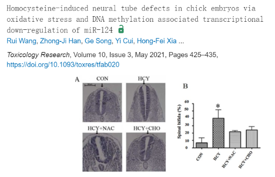 12. 同型半胱氨酸通过增加氧化应激和下调DNA甲基化相关的 miR-124 转录水平诱导鸡胚胎神经管缺陷