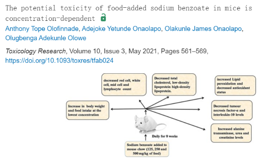 25. 食品添加剂苯甲酸钠对小鼠的潜在毒性呈浓度依赖性