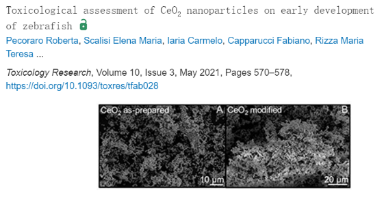 26. CeO2纳米颗粒对斑马鱼早期发育的毒理学评价