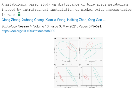 27.氧化镍纳米颗粒气管滴注致大鼠胆汁酸代谢紊乱的代谢组学研究