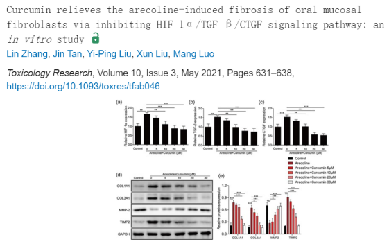 32. 姜黄素通过抑制 HIF-1α/TGF-β/CTGF 信号通路缓解槟榔碱诱导的口腔黏膜成纤维细胞的纤维化:体外研究