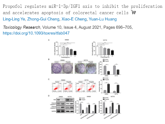 4. 异丙酚调节miR-1-3p/IGF1轴抑制结直肠癌细胞增殖并加速其凋亡