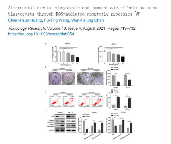 6. 链格孢酚通过ROS介导的细胞凋亡过程对小鼠囊胚产生胚胎毒性和免疫毒性作用