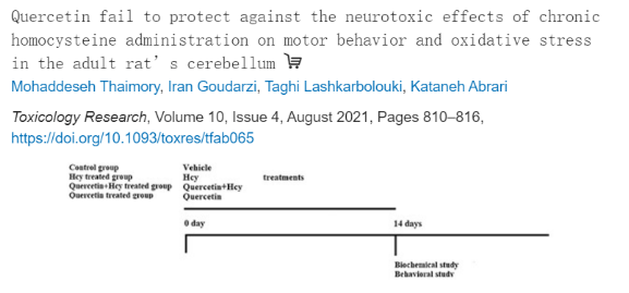 15. 槲皮素不能防止慢性同型半胱氨酸给药对成年大鼠小脑运动行为和氧化应激的神经毒性作用