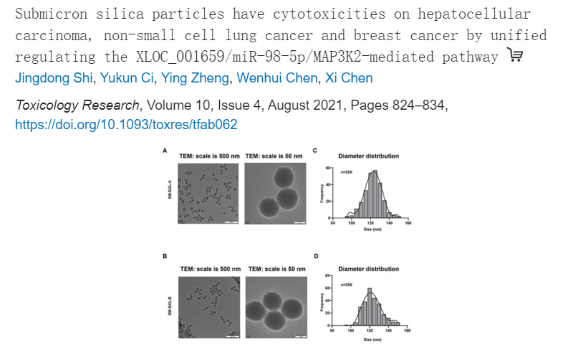 17. 亚微米二氧化硅颗粒通过协调调控XLOC_001659/miR-98-5p/MAP3K2介导的通路对肝细胞癌、非小细胞肺癌和乳腺癌产生细胞毒性