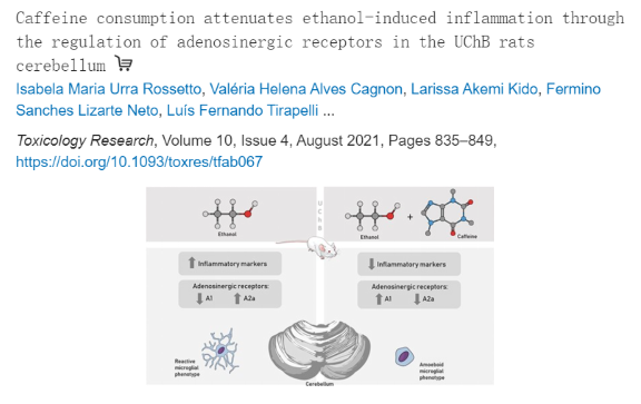 18. 咖啡因消耗可通过调节UChB大鼠小脑中的腺苷能受体减轻乙醇诱导的炎症
