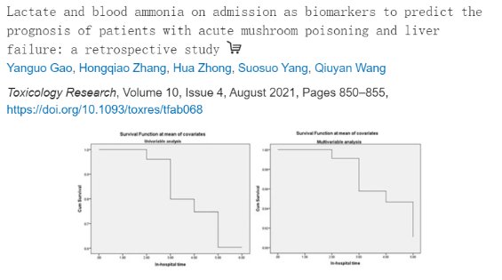 19. 入院时乳酸和血氨作为预测急性蘑菇中毒和肝衰竭患者预后的生物标志物:一项回顾性研究