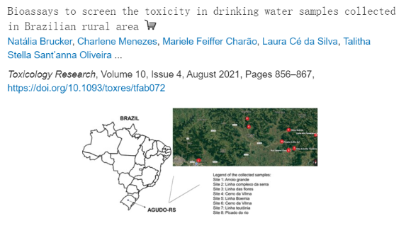 20. 在巴西农村地区收集的饮用水样本中进行毒性筛查的生物测定