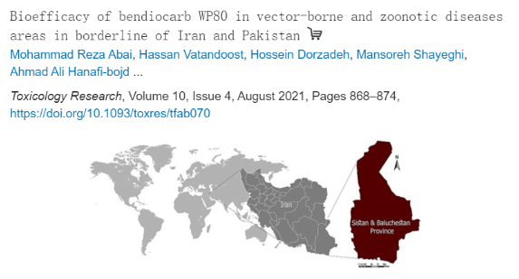 21. 噁虫威WP80在伊朗和巴基斯坦边界的媒介传播和人畜共患疾病地区的生物功效
