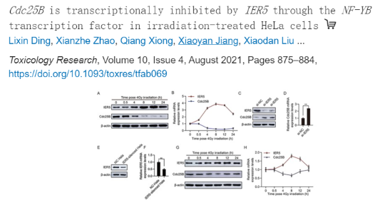 22. 在辐照处理的 HeLa 细胞中,Cdc25B通过NF-YB转录因子被IER5转录抑制