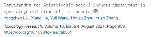 30. 更正:马兜铃酸I诱导啮齿类动物精原干细胞受损