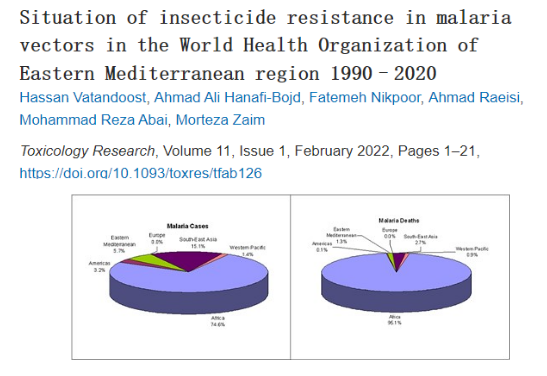 1. 世界卫生组织报告东地中海地区 1990-2020 年疟疾病媒对杀虫剂的抗药性状况