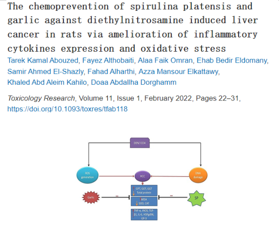 1.螺旋藻和大蒜通过降低炎性细胞因子表达和氧化应激水平对二乙基亚硝胺诱导大鼠肝癌的化学预防作用