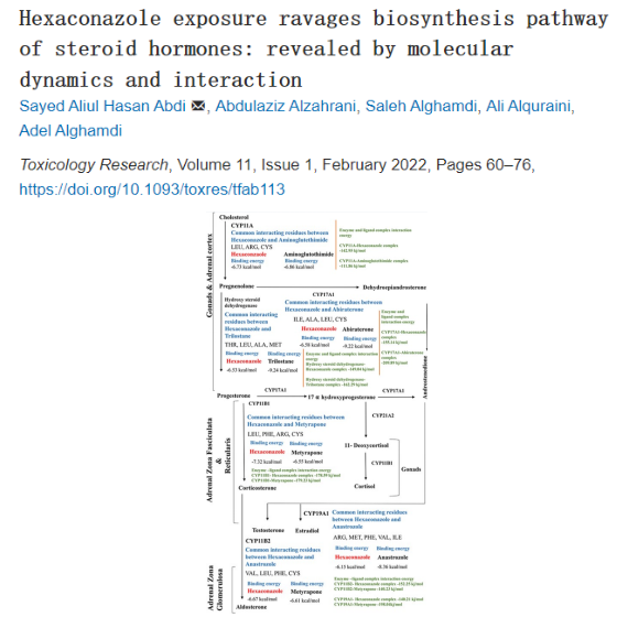 5.己唑醇暴露破坏类固醇激素的生物合成途径:分子动力学和相互作用