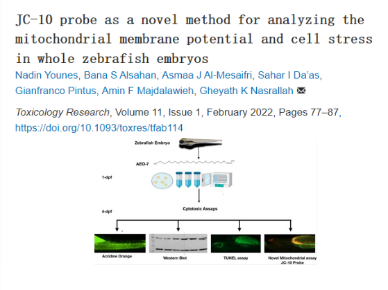 6. JC-10 探针作为分析全斑马鱼胚胎线粒体膜电位和细胞应激的新方法
