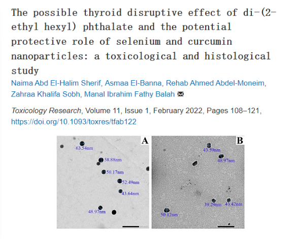 9. 邻苯二甲酸二(2-乙基)己酯对甲状腺的可能破坏作用以及硒和姜黄素纳米粒子的潜在保护作用:一项毒理学和组织学研究