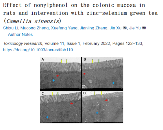 10.壬基酚对大鼠结肠粘膜的影响及锌硒绿茶对其的干预作用