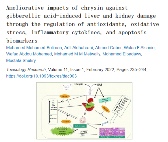 21. 白杨素通过调节抗氧化剂、氧化应激、炎性细胞因子和凋亡生物标志物水平改善赤霉酸引起的肝肾损伤