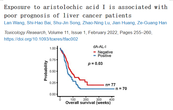 1.马兜铃酸I暴露与肝癌患者预后不良有关