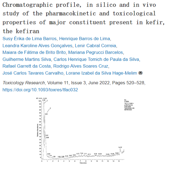 12. 通过指纹图谱,计算机模拟和体内实验研究开菲尔粒中主要成分开菲尔胞外多糖的药代动力学和毒理学特性