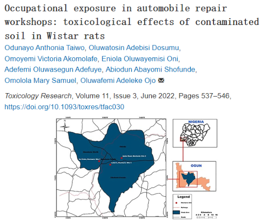 14. 汽车维修车间职业暴露:污染土壤对Wistar大鼠的毒理学影响