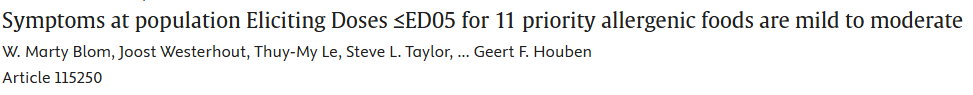 概述:11种主要致敏食物在引发剂量(ED)≤ED05剂量时,仅在少数过敏个体中引发轻中度症状,严重反应仅见于较高剂量(ED08)。