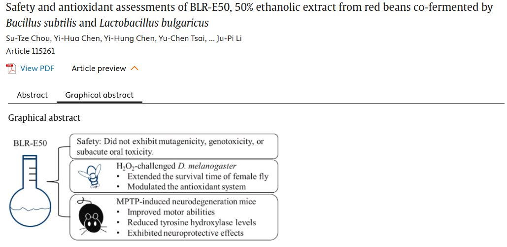 概述:本研究发现,红豆发酵提取物BLR-E50具有良好安全性及多效生物活性,包括抗氧化、抗衰老与神经保护作用,支持其作为功能性食品成分在膳食干预中的应用潜力。