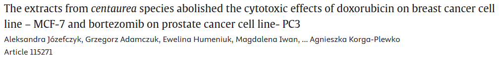 概述:矢车菊属植物提取物可逆转阿霉素与硼替佐米诱导的抗癌活性,提示癌症患者在化疗期间使用植物制剂需谨慎,避免干扰治疗效果。
