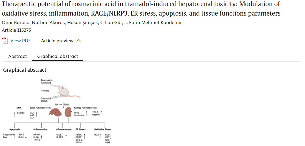 17.迷迭香酸在曲马多诱导的肝肾毒性中的治疗潜力:基于氧化应激、炎症、RAGE/NLRP3、内质网应激、细胞凋亡及组织功能的调控机制