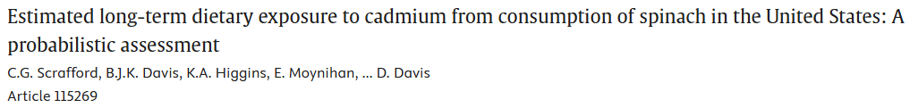 21.美国人群通过菠菜摄入镉的长期膳食暴露评估:基于概率模型的定量研究