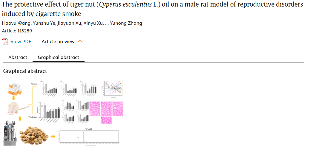 概述:虎坚果油通过调节激素水平与增强抗氧化能力,可有效缓解香烟烟雾诱导的雄性大鼠生殖损伤,具有作为日常膳食补充剂改善男性生殖健康的应用潜力。