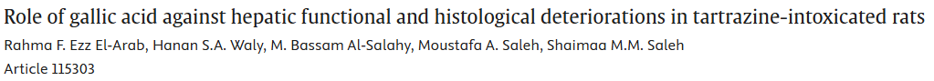 概述:没食子酸通过调节大鼠肝功能、生化指标及氧化应激状态,显著减轻柠檬黄诱导的肝组织损伤,展现其作为天然肝脏保护剂的潜在应用价值。