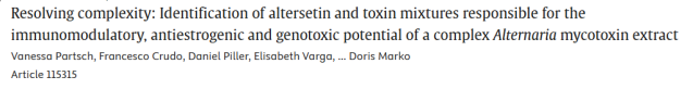 1. 链格孢菌毒素提取物中Altersetin及毒素混合物对免疫调节作用、抗雌激素作用及基因毒性作用的关键贡献鉴定