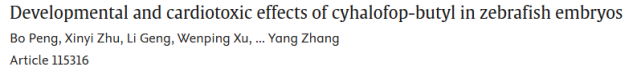 概述:氰氟草酯引发的氧化应激、脂质累积及凋亡,可导致斑马鱼胚胎发育畸形和心脏功能损伤,并显著调控心脏发育相关基因表达。