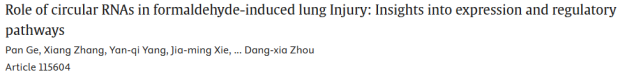 20. 环状RNA在甲醛诱导的肺损伤中的作用:表达与调控通路的研究
